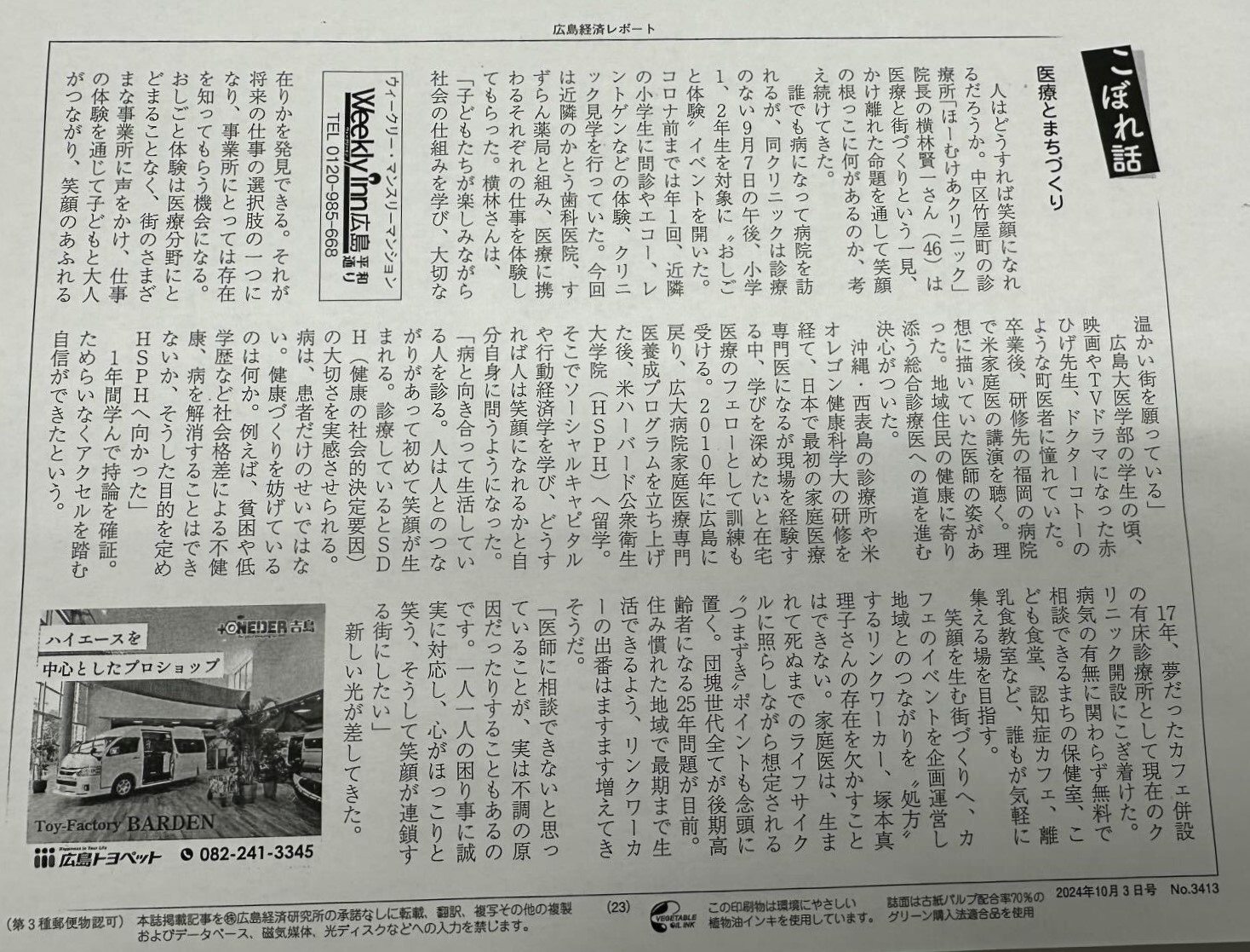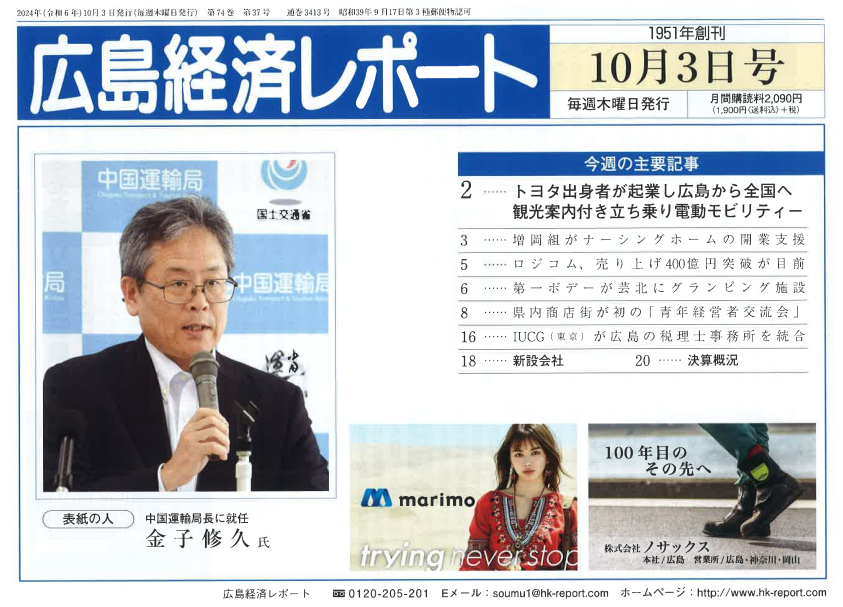 広島経済レポートに横林院長の取材記事が掲載されました。