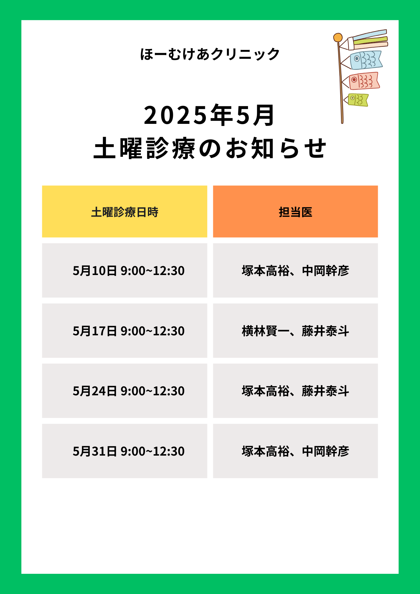 5月土曜診療のお知らせ