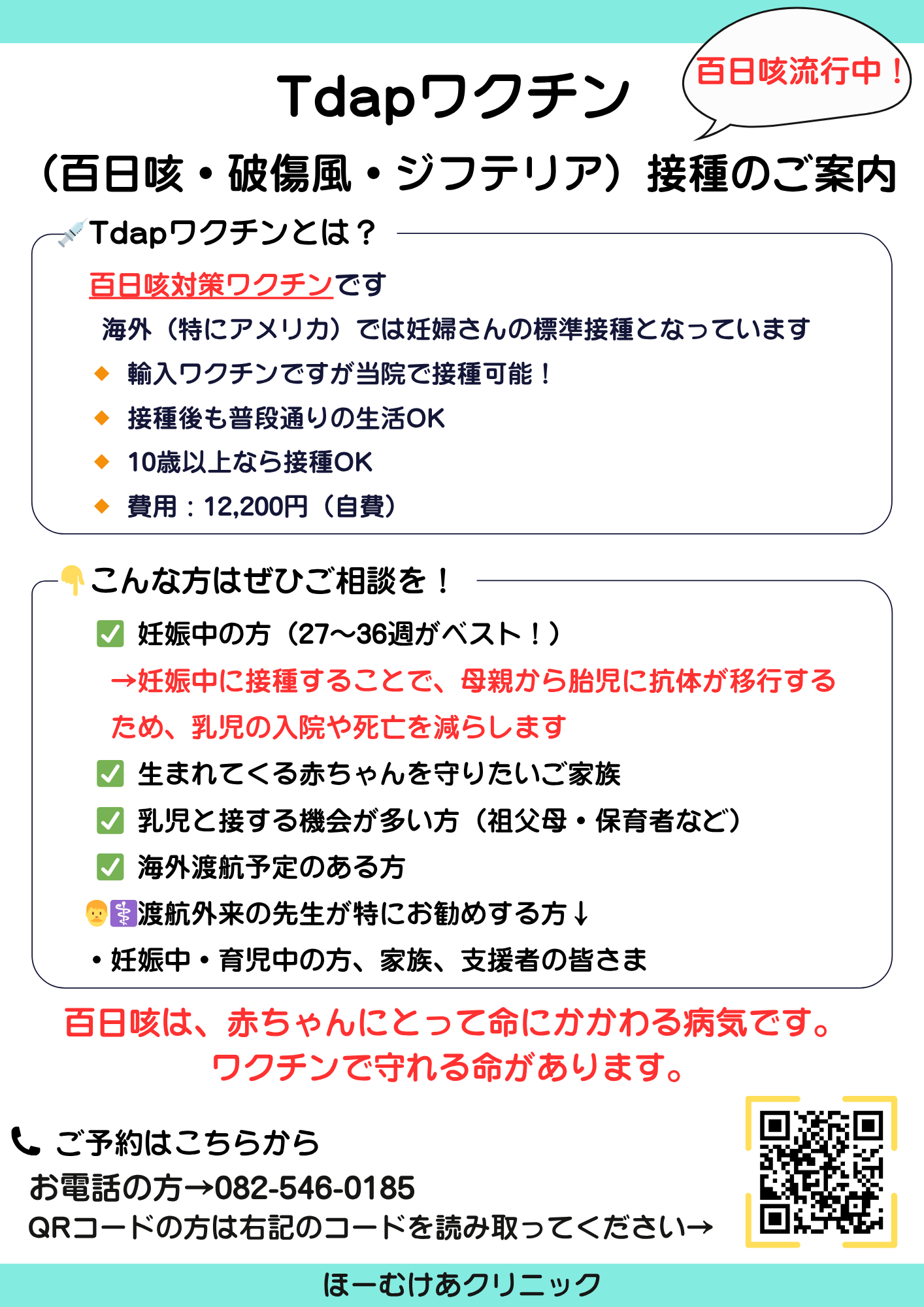 Tdapワクチン(百日咳・破傷風・ジフテリア)接種のご案内