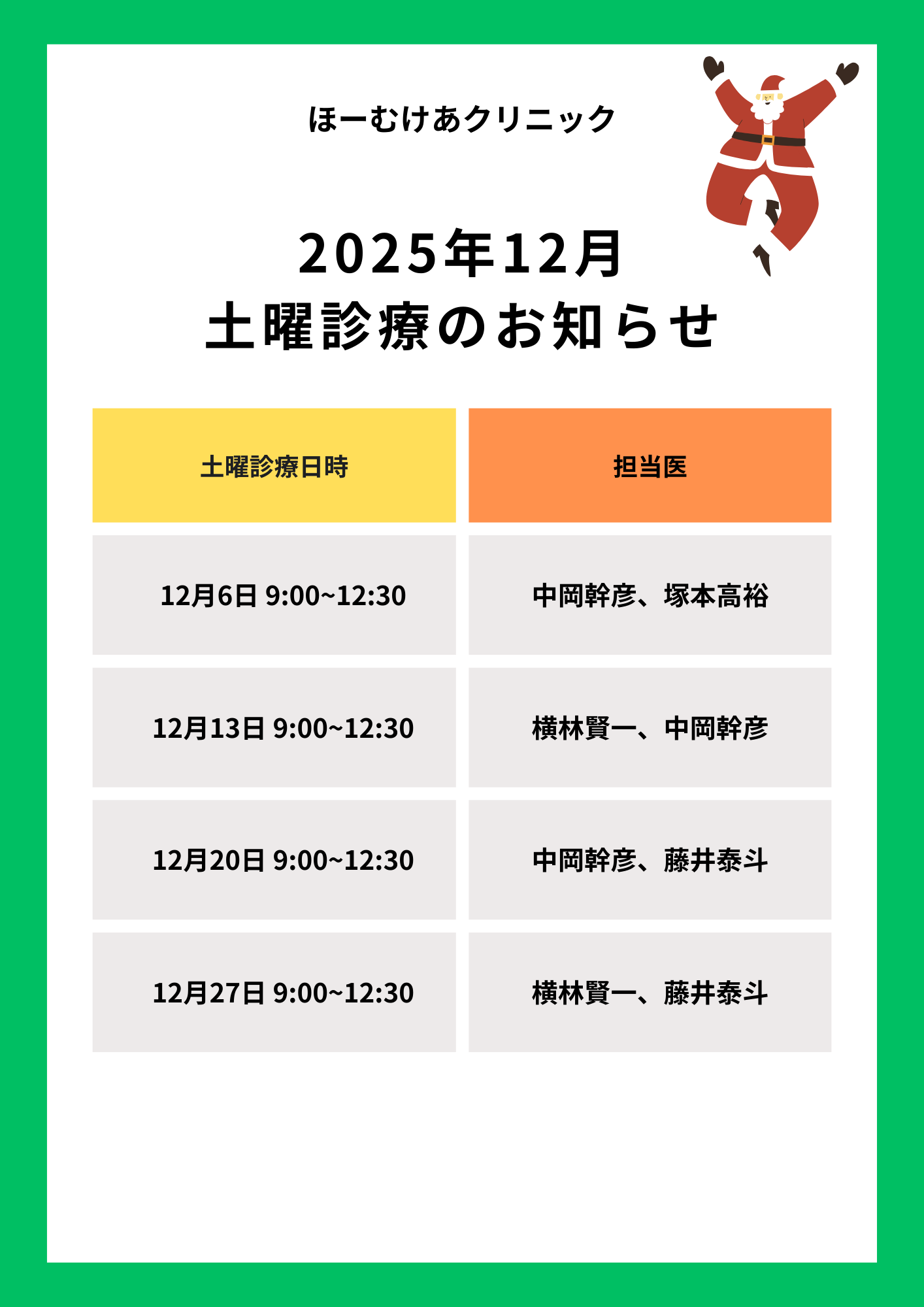 12月土曜診療のお知らせ